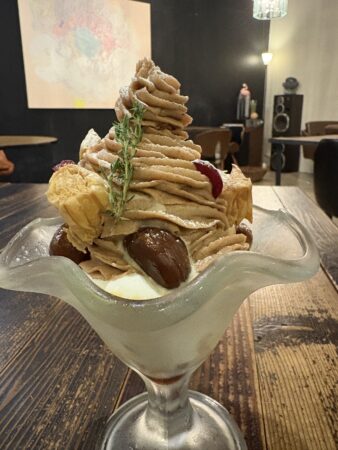 2025-9-20モンブランパフェはじめました。 モンブランパフェはじめました。 今年はやめようと思ってたけど 長年やってるので… 逆に長年やつてるのでファンの方もいるようで 問い合わせをいただきます。 今年はいつものにパイを載せてバージョンアップ。 あまり長くはやらないかもなので お早めに