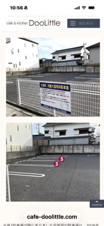 2026-2-4駐車場について Screenshot ホームページでお知らせしてますが 年明けに駐車場が4台減りまして 少し離れますが裏手に2台確保しました。 広めの駐車場なのと大通り沿いではないので 入りやすい停めやすいかとは思います。 みなさんお見知りおきを。