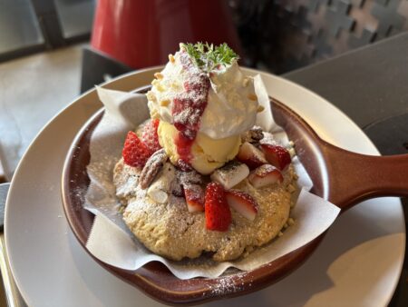 2026-4-7アイスクリーム オン ザ クッキーズ わかりやすい名前と思ったけどパッとしない? そのままやけど… 通称パヌッキーとよばれるアメリカンクッキーにアイスクリーム。 パンケーキとクッキーのハイブリッドなんだけど パンケーキ感はなし。見た目だけなので… 甘さ控えめでイチゴやナッツ、マシュマロトッピングして 最強。 これみんなに食べて欲しいなぁ 抹茶とホワイトチョコバージョンもあるって。 ボクはまだ食べてないけどスタッフお墨付き。